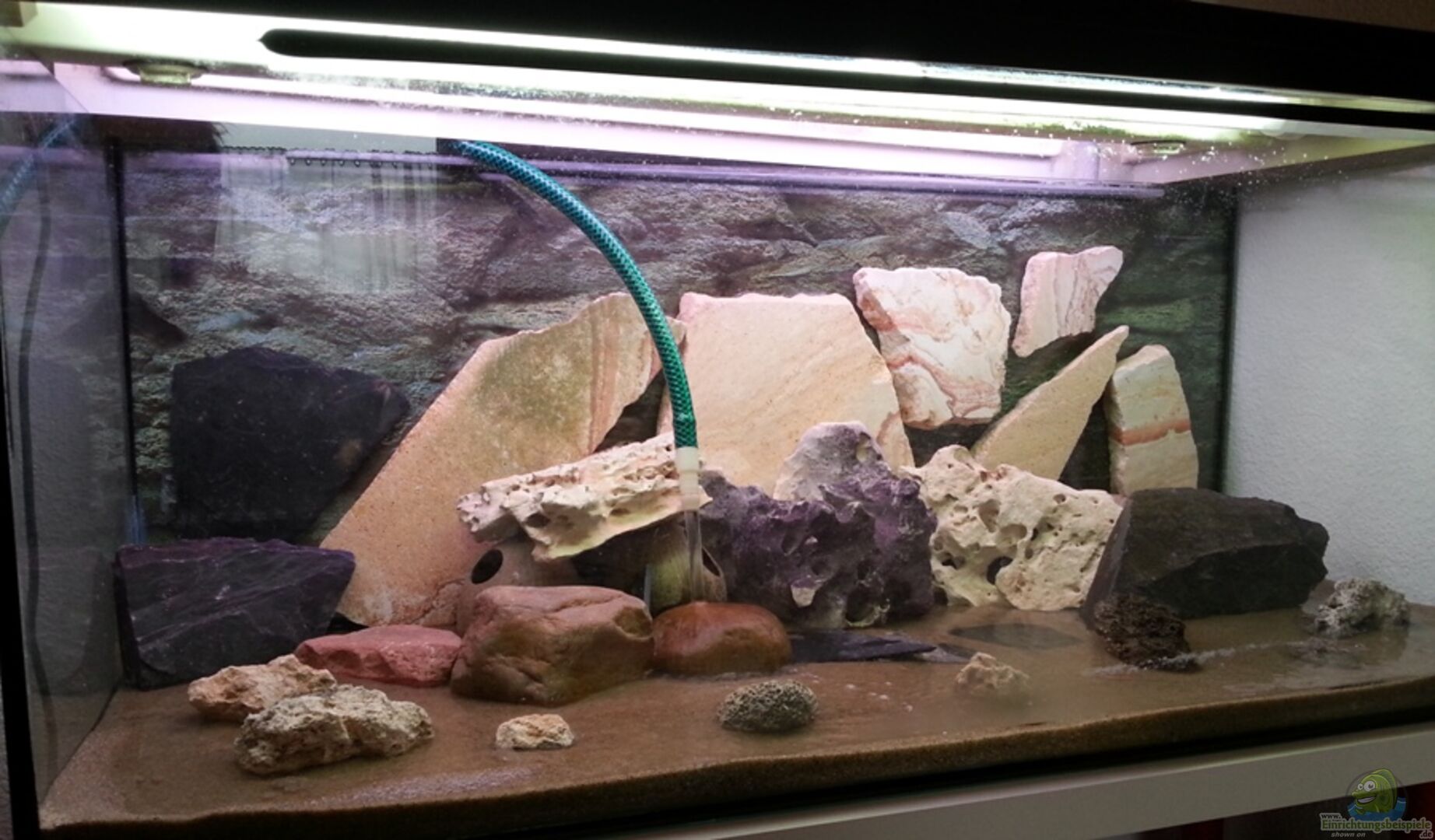Das Becken ist ein Standard-Becken, wie man es im Handel kaufen kann, mit Abdeckung und zwei Leuchtstoffröhren T - 8