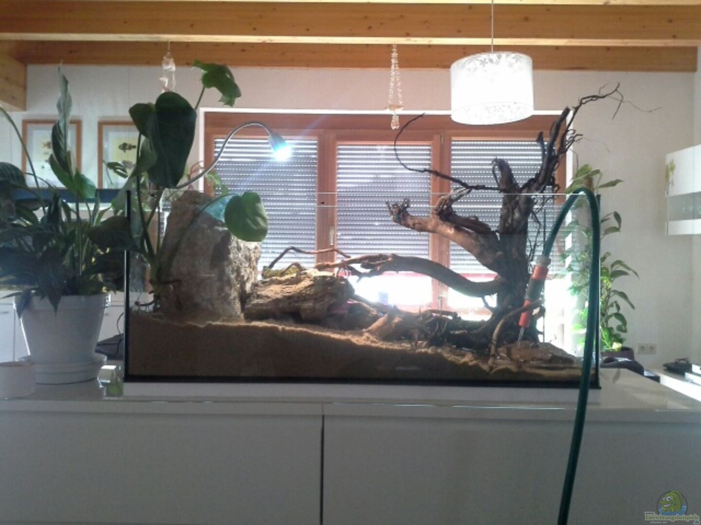 Steine in unterschiedlichen Grö??en: Kalkstein und Sandstein Moorkienäste Laub Buchenzweige Insbesondere zwischen den Steinen ergeben sich Spalten und Unterstände, die teilweise durchschwommen werden können. Da das Becken von allen Seiten einsehbar ist, ergibt sich ein toller Anblick, wenn die Fische dies ausnutzen.