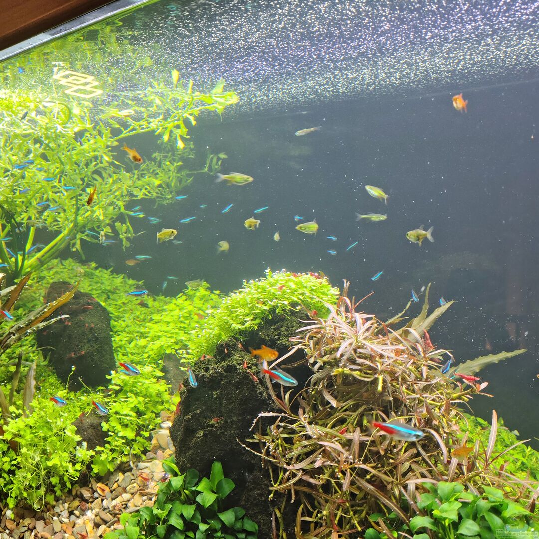 Stand: 21.12.2025 - ca. 70 - 80 blaue Neonsalmler - ca. 12 Neontetra - ca. 50 Augenfleckbärblinge - ca. 50 Funkensalmler (auch Feuersalmler genannt) - ca. 30 Microdevario kubotai - 6 Otocinclus sp. (hoppei?) - ca. 15 Amanogarnelen - unzählige Neocaridina davidi rot - Geweihschnecken - Stahlhelmschnecken -> als Beifang aus dem Handel habe ich 2 Querstreifenbärblinge dabei, die sehr hübsch sind (werde ich vermutlich aufstocken).