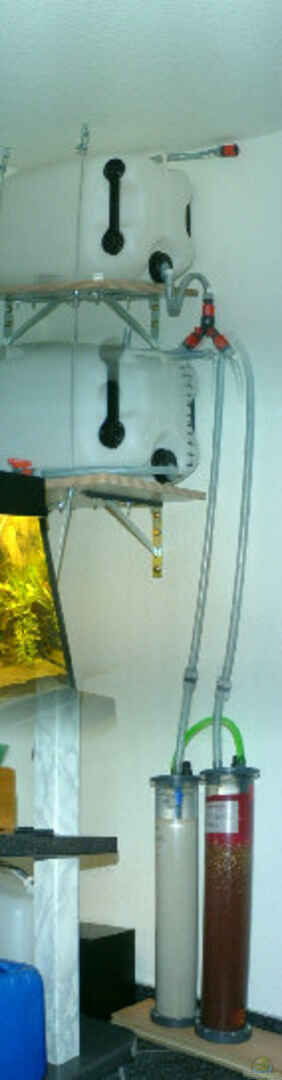 Co2 Anlage Eigenbau mit Nachtabschaltung, Druckminderer u. Rückschlagventil. Co2 Einbringung über einen Flipper Vollentsalzeranlage: 2 Säulen (Kati+Ani) mit je 5 Liter Harz. Au??er dem Flipper befindet sich im Becken keine sichtbare Technik.