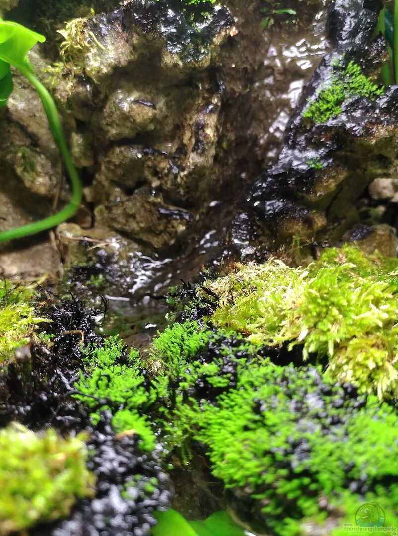 Aquaterrarium ExoTerra Die Silikonnähte im Wasserteil wurden zusätzlich mit Silikon nachgezogen, da werksseitig nicht ganz wasserdicht. Anschließend wurde der Innenausbau auf Basis von Styropor gestaltet. Der Landteil steht auf Säulen aus PVC-Rohren, beklebt mit Styroporstücken. Auf Höhe des Wasserspiegels wurden "Plateaus" gestaltet, auf denen Moos wachsen soll. Im hinteren Bereich wurden zudem durch schräg zum Boden verlaufende Styroporplatten Pflanzbereiche sowie Platz [...]