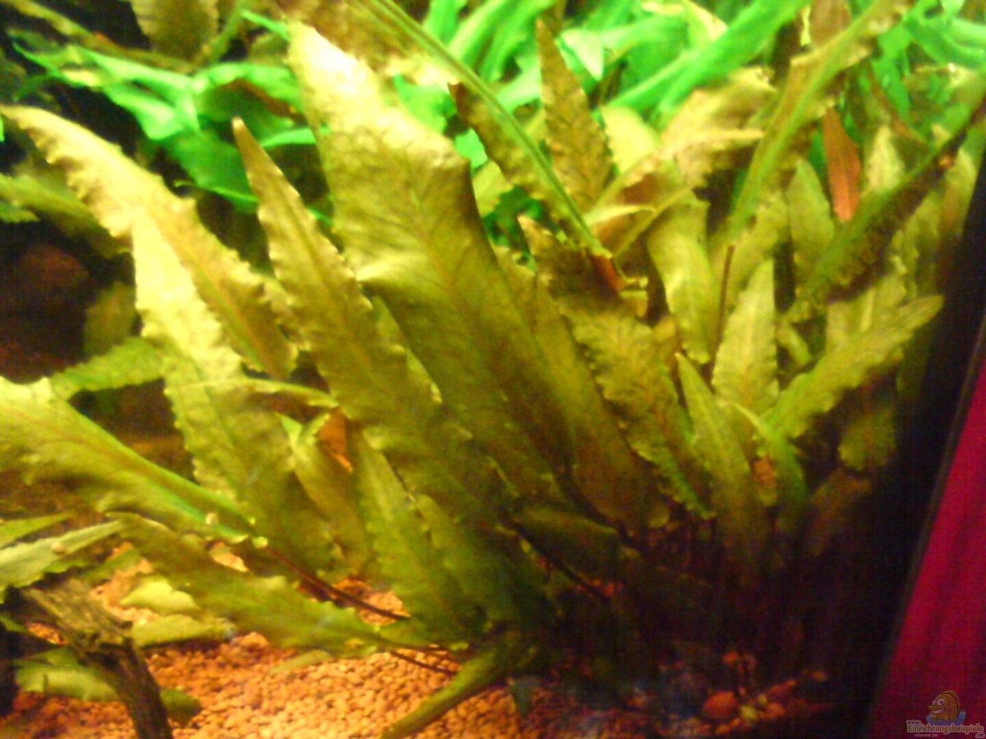 Javafarn (wächst auf Lavastein) schmalblättriger, brauner Wasserkelch Langgestielte Wendtii Teichlebermoos (wächst auf Wurzel) Indischer Wasserfreund