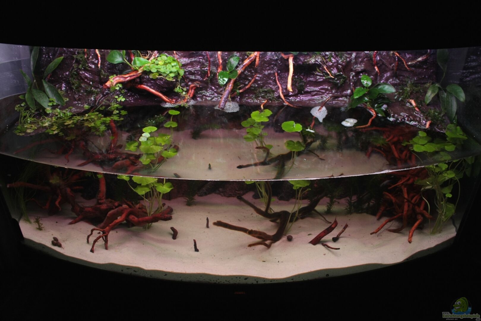 Das Becken ist ein Juwel Vision 180. Es handelt sich hierbei um ein Paludarium, welches bis etwas über die Hälfte befüllt ist