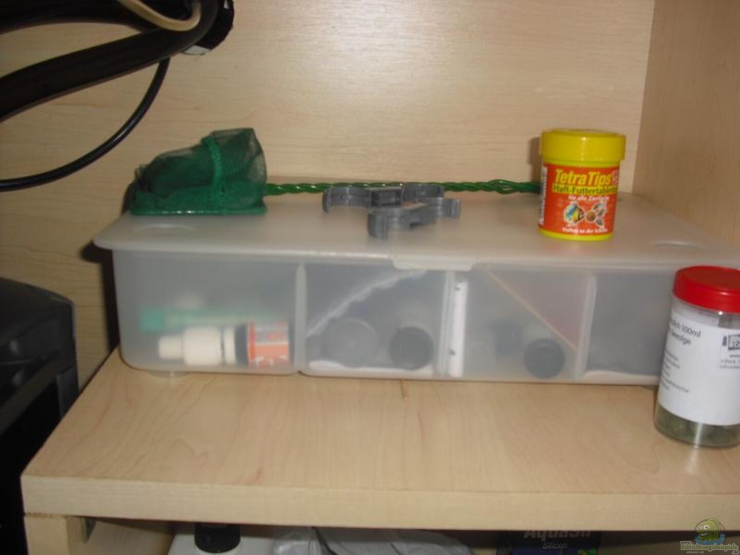 CO2 Anlage mit 2 kg Flasche, Nachtabschaltung (derzeit nicht angeschlossen) eheim Strömungspumpe (kleinste Version), um das CO2 besser zu verteilen Eheim Jäger Heizer 300 W Digitalthermometer Luftpumpe, läuftr aufgrund weniger Pflanzen, wenn das Licht aus ist JBL 11 W UV-Klärer, läuft Nachts für 8 Stunden (langsamer Anstieg der Zeit auf 10 bis 12h) LED-Lichtleiste von einem gro??en schwedischen Möbelhaus, läuft abends 1 Stunde