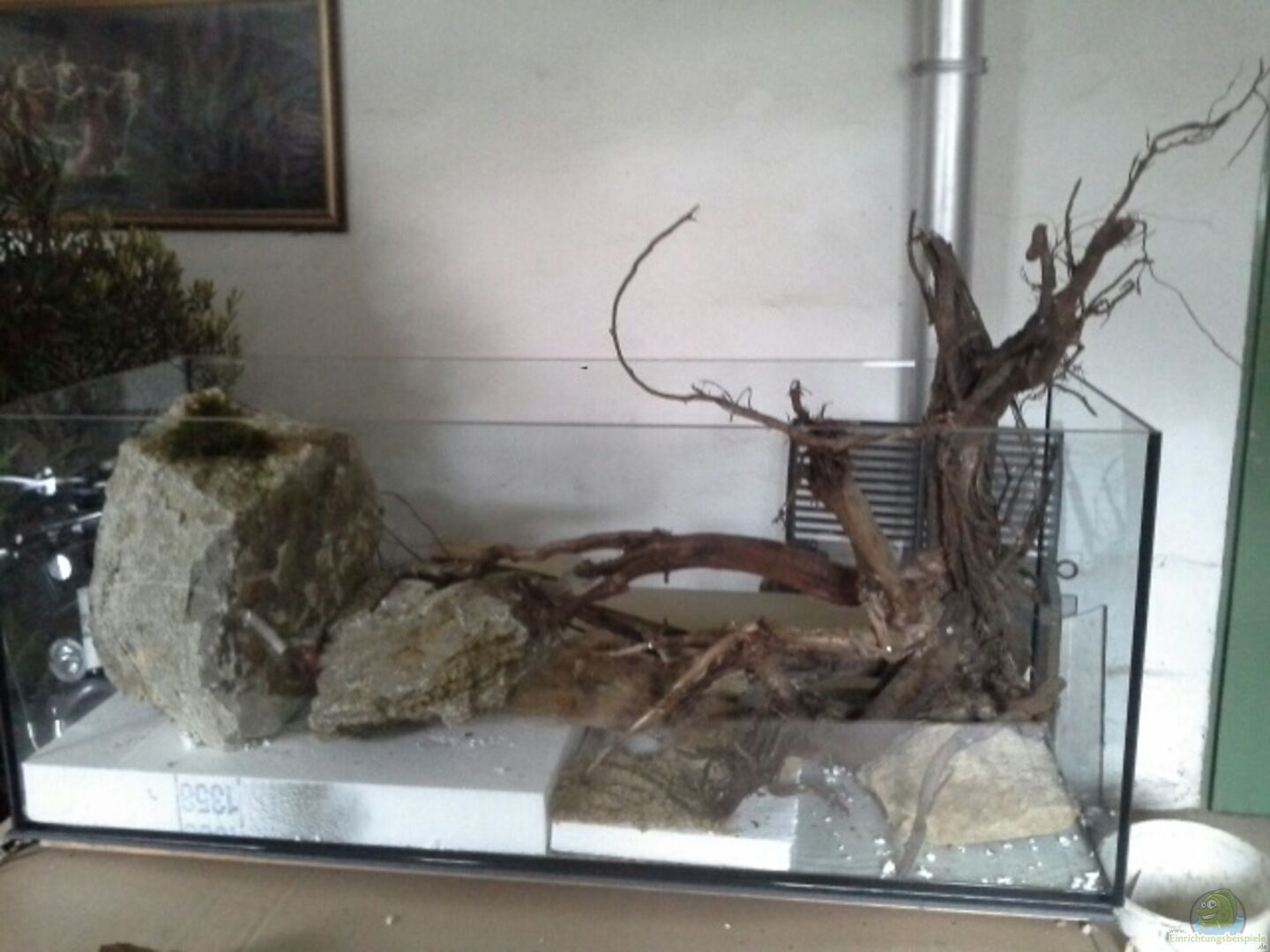 Steine in unterschiedlichen Grö??en: Kalkstein und Sandstein Moorkienäste Laub Buchenzweige Insbesondere zwischen den Steinen ergeben sich Spalten und Unterstände, die teilweise durchschwommen werden können. Da das Becken von allen Seiten einsehbar ist, ergibt sich ein toller Anblick, wenn die Fische dies ausnutzen.