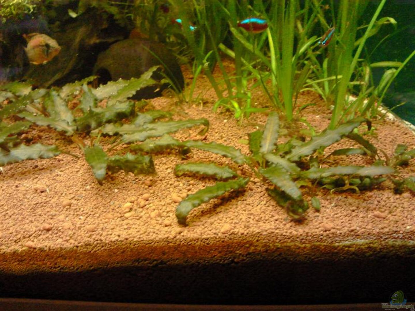 Mooskugeln (Cladophora aegagropila) auf Wurzel aufgebunden Vallisneria spiralis Brauner Wasserkelch / Wendt`s Wasserkelch braun (Cryptocoryne wendtii brown) Teichlebermoos (Riccia fluitans) breite Amazonaspflanze (Echinodorus bleheri) Muschelblume / Wassersalat (Pistia stratiotes) gedüngt wird wöchentlich mit EasyCarbo, ProFito und Ferro (2ml)