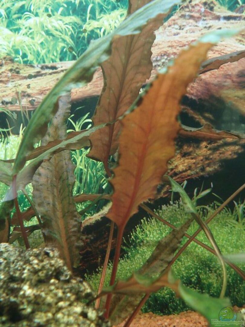 Hier findest du viele Infos und Beispiele für die Bepflanzung eines Aquariums mit Cryptocoryne affinis (Geflammt braunblättriger Wasserkelch).