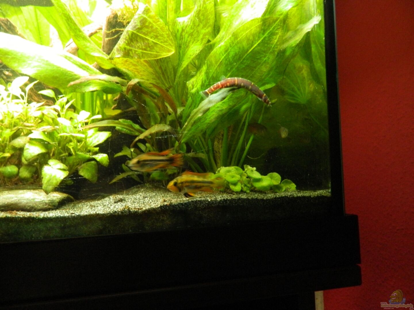 1/2 Apistogramma cacatuoides - Kakaduzwerbuntbarsch 1/2 Ancistrus sp. - Blauer Antennenwels 20 Hemmigrammus rhodostomus - Ahls Rotmaulsalmer 8 Hyphessobrycon flammeus - Roter von Rio (waren mal 10, zwei sind leider eine Woche nach dem Einsetzen verstorben) 10 Pangio myersi - Dornauge 3 Vittina coromandelnian - Zebrarennschnecke 2 Melanoides tuberculatus - Turmdeckelschnecke in Planung: Garnelen? Wei?? nur noch nicht genau welche. Tendiere momentan zu Amanos wegen der Grö??e, [...]