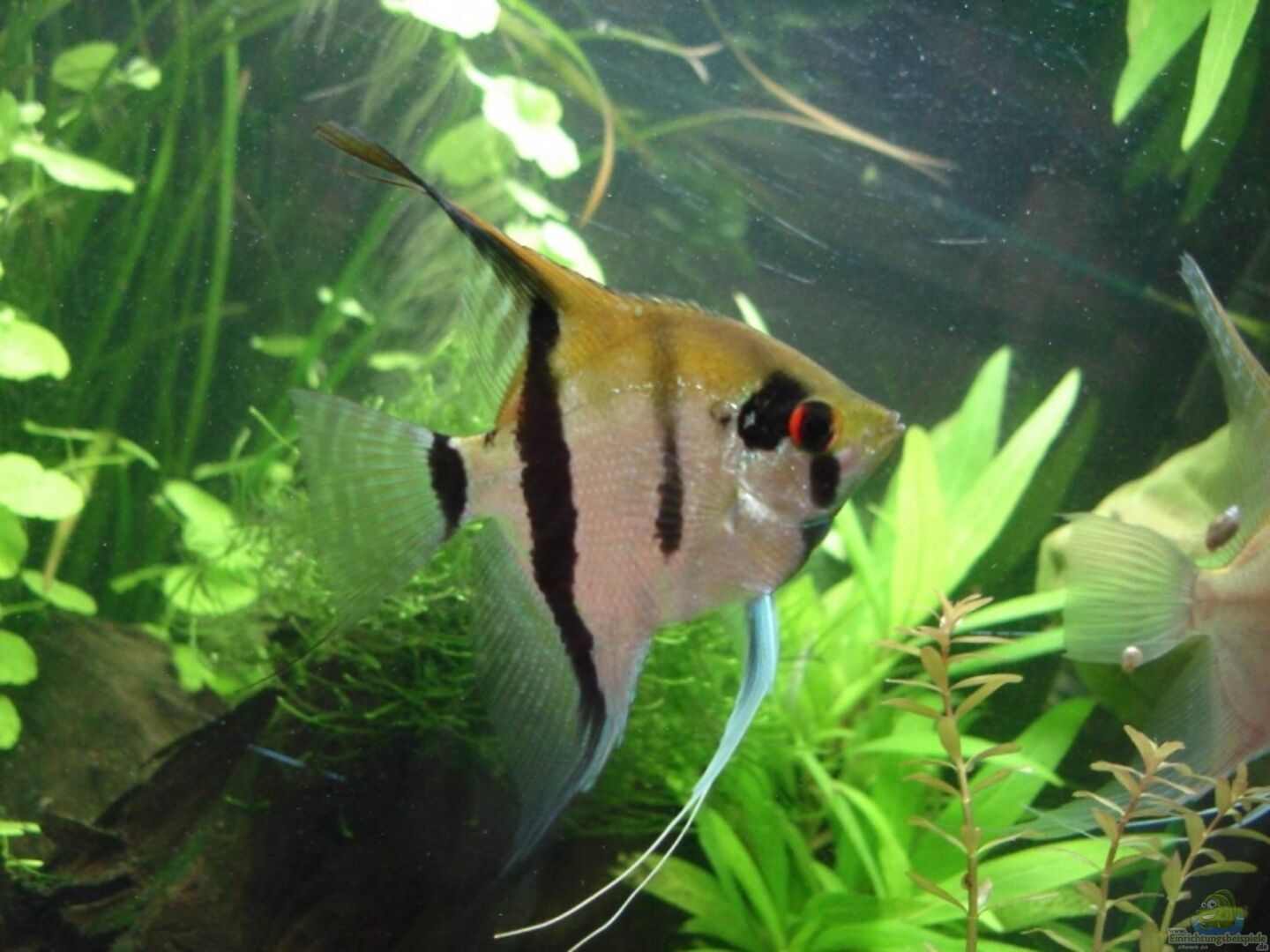 1 Goldskalar (m) 1 Marmorskalar (m) 1 Wildfarbener Skalar (w) 1 Koi-Skalar 2 schwarze Skalare 2 Marmorierte Panzerwelse - Corydoras paleatus 1 Punktierter Panzerwels - Corydoras paleatus 5 Zitronensalmler - Hyphessobrycon pulchripinnis 6 Keilfleckenbärblinge - Trigonostigma heteromorpha 3 blaue Keilfleckenbärblinge - Trigonostigma heteromorpha var. "blau" 12 Rotkopfsalmler - Hemigrammus bleheri Wirbellose: 1 Raubschnecke - Anetome helena