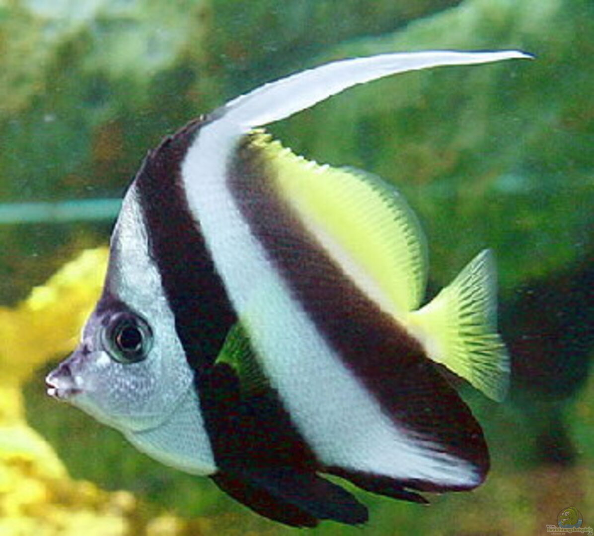 Hier findest du alle wichtigen Infos zur Haltung und viele Beispiele für die Einrichtung deines Aquariums für Heniochus varius (Schwarzer Wimpelfisch).