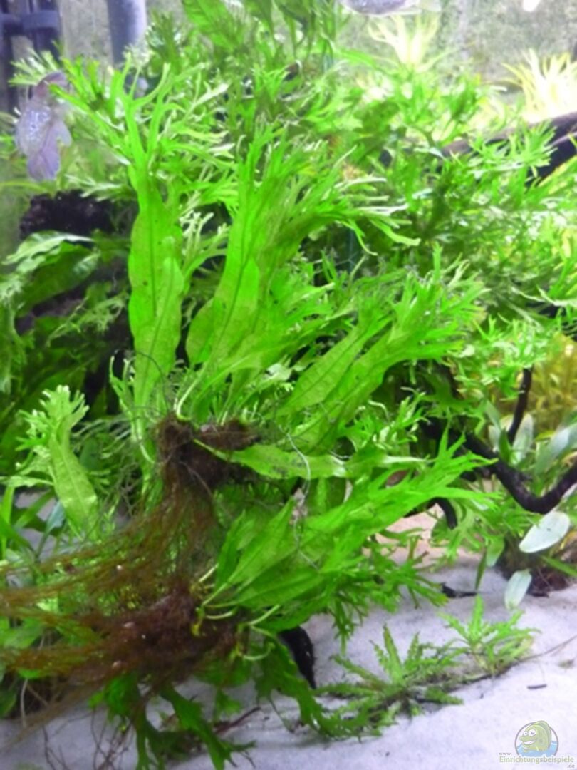 Vordergrund: Anubias Pogostemon helferi Glossostigma elatinoides Zwerg-Schwertpflanze Mitte: Javamoos (Vesicularia dubyana) Grünes Mooskraut (Mayaca fluviatilis) Hintergrund: Javafarn (Microsorum pteropus) Windelov eine unbekannte Pflanze (wächst sternförmig/buschig) Schlangenbart Lotusblume 4 Mooskugeln