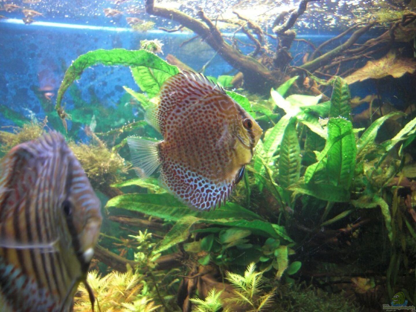 9 Snake Skin und Leopard Snakeskin Diskus ( ca. 1/2 Jahr alt ) 25 Kirschflecksalmler, ca. 50-60 Neons, 13 marmorierte Beilbäuche. Dazu ca. 50 Amano Garnelen und ca. 20-30 andere Garnelen Arten, die mir den Boden und die Pflanzen sauber halten!! für den Bodengrund eine unbekannte Zahll Turmdeckelschnecken und 10 Teufelsschnecken.
