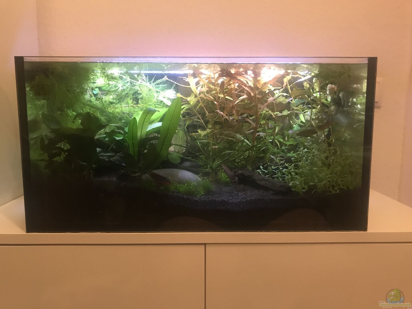 Das Aquarium wurde bei der Firma Aquarienkontor in Haltern am See in Auftrag gegeben. Im Rahmen der Einlaufphase wurde die Idee entwickelt einen speziellen Aufsatzhalter für die Scaping-Light Basic LED zu entwickeln um den Abstrahlwinkel zu optimieren und die Ausleuchtungsfläche zu vergrö??ern. Mehr unter Technik und im Update vom 24.02.2019. Ausgestattet wurde das Aquarium mit einer Back-to-Nature 3D-Rückwand (Modell Rocky 60) in die das Filtersystem integriert wurde. Die gesamte Technik [...]