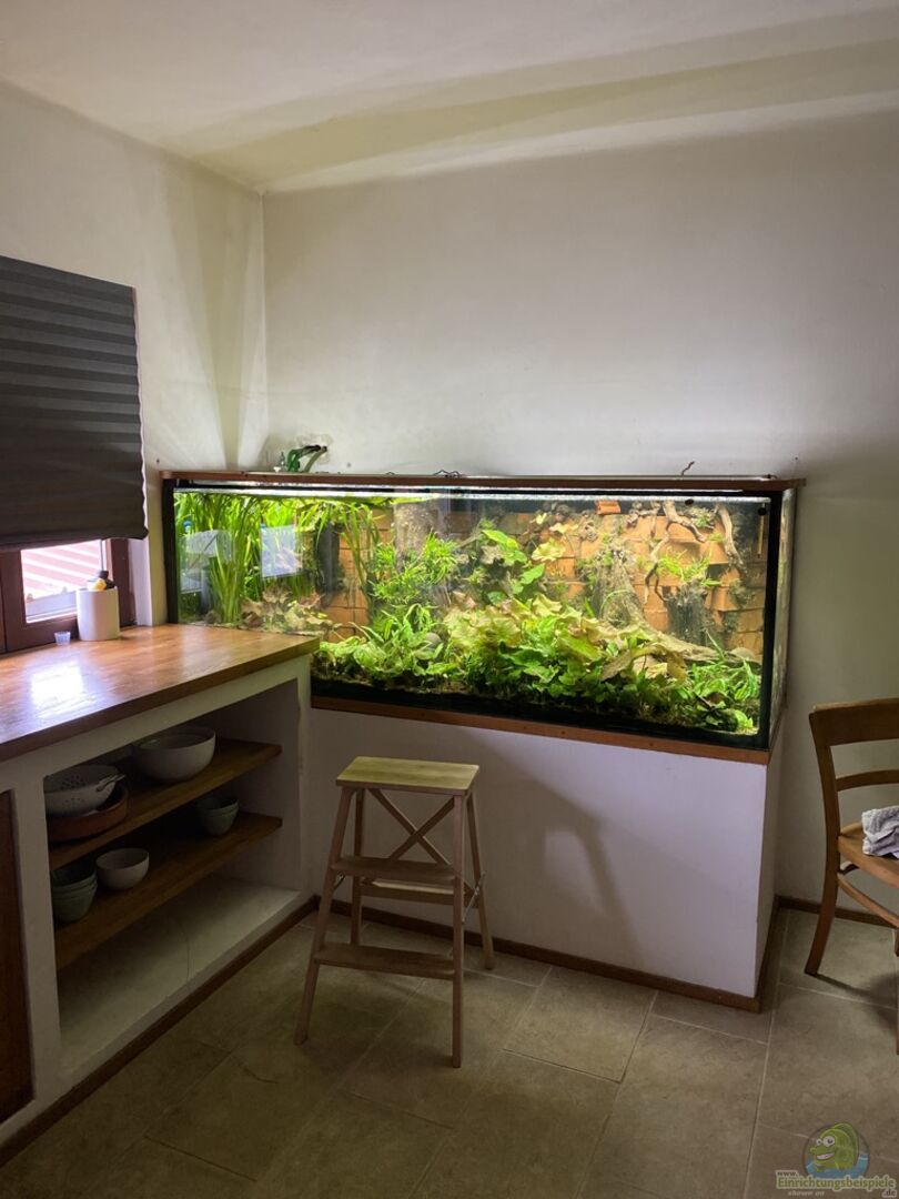 Das Aquarium steht auf einem selbstgemauerten Unterbau aus Ytong, dieser ist verputzt und gekalkt. Der Unterbau fügt sich nahtlos in die restliche gemauerte Küche ein. Ziel war es, das Becken mit der Küche zu verbinden, es nicht als separates Möbelstück zu sehen, sondern es mit dem Interieur zu verbinden. Aquarien in dieser Grö??e sind immer Sonderanfertigungen. Leider gab es Probleme einen geeigneten Aquarienbauer zu finden. Durch den speziellen Standort (integriert in die Arbeitsplatte) [...]