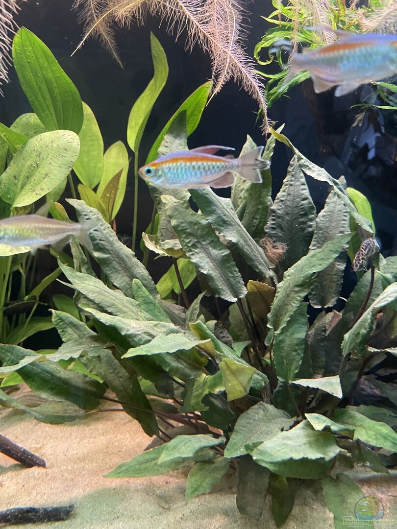 5 Ctenopoma acutirostre (Leopard-Buschfisch), Geschlechter unbekannt 1/1 Benitochromis nigrodorsalis moliwe (Schwarzrücken Prachtbuntbarsch) 1/1 Pelvicachromis taeniatus (Smaragdprachtbarsch) 25 Phenacogrammus interruptus (Blauer Kongosalmler)