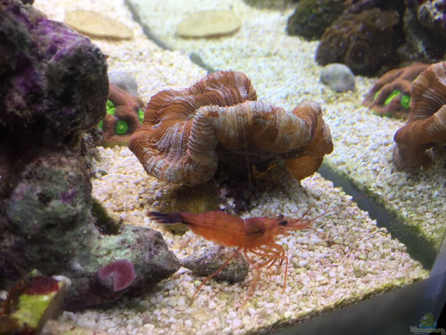 3 Amphiprion ocellaris (falscher Clownfisch), hatte zuerst 1 Pärchen, leider ist 1 Fisch eingegangen. Hinterher wurde ein weiteres Pärchen bestellt. Bisher vertragen sich alle 3 sehr gut. Sofern sich ein Pärchen herauskristallisiert, wird der 3. Fisch weggegeben. 1 Cryptocentrus cinctus (Zitronengrundel) in Symbiose mit einem Alpheus bellulus (Hübscher Knallkrebs) 1 Koumansetta rainfordi (Rainfords Grundel) 3 Chromis viridis (Grüne Schwalbenschwänzchen) 1 Gramma Loreto (Königs-Feenbarsch) 4 [...]