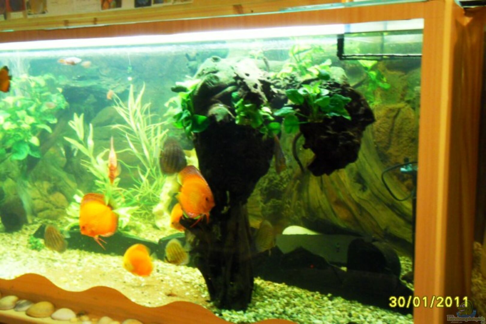 12 Wurzeln zwei davon so gebaut das die Diskusfische sich unterstellen können, Schieferplatten , 6 Kokusnüsse , Eichenblätter , Buchenblätter, Walnusblätter Seemandelbaumblätter, Steinplatten, Amphoren aus Ton, Blumentöpfe aus Ton
