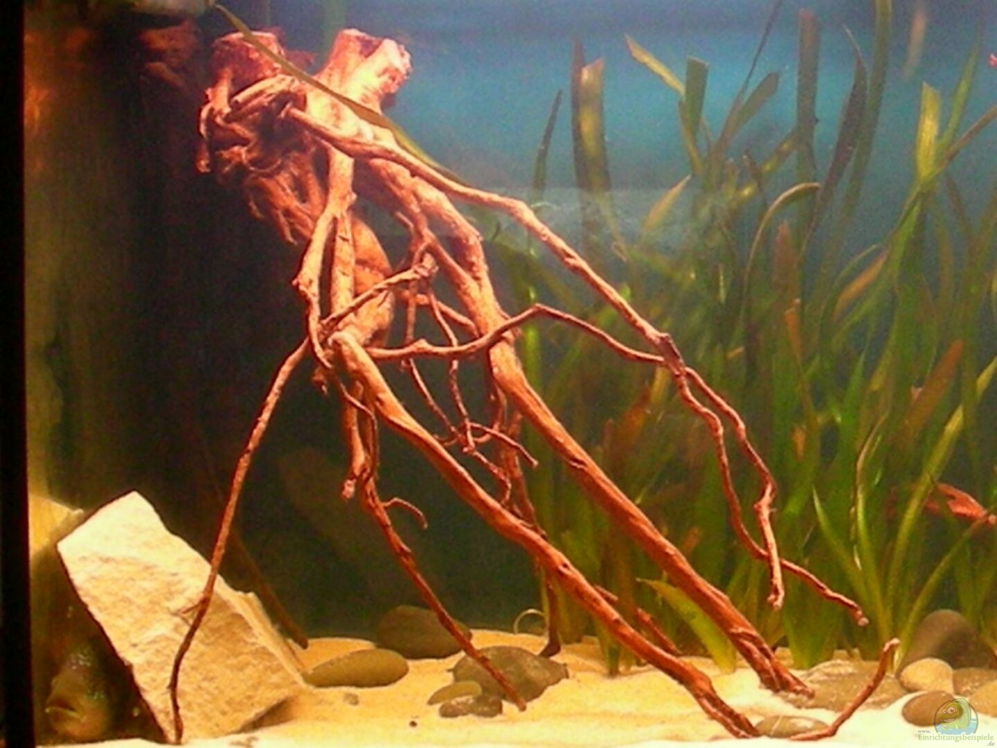 - 2 gro??e Wurzeln, eine jeweils in der linken und rechten Ecke - diverse kleine, abgerundete Steine - 1 gro??er Stein, der an der linken Seitenscheibe liegt und so einen Unterschlupf bildet