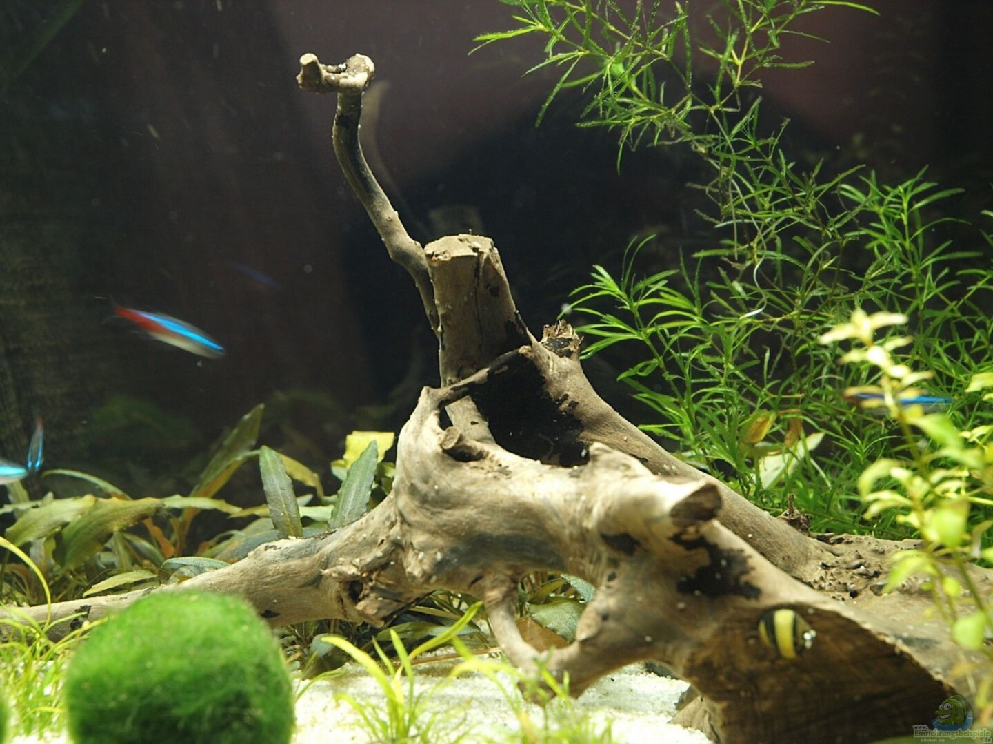 Grösserer, heller Stein, mit kleiner Höhle auf der Rückseite. Unterschlupf aus Lavagestein (vom Ethna mitgebracht). Kleiner Unterschlupf aus Flusssteinen. Kleine gekaufte Welshöhle. Ein paar lose Flusssteine. Mangrovenwurzel. Ein paar Erlenzäpfchen.