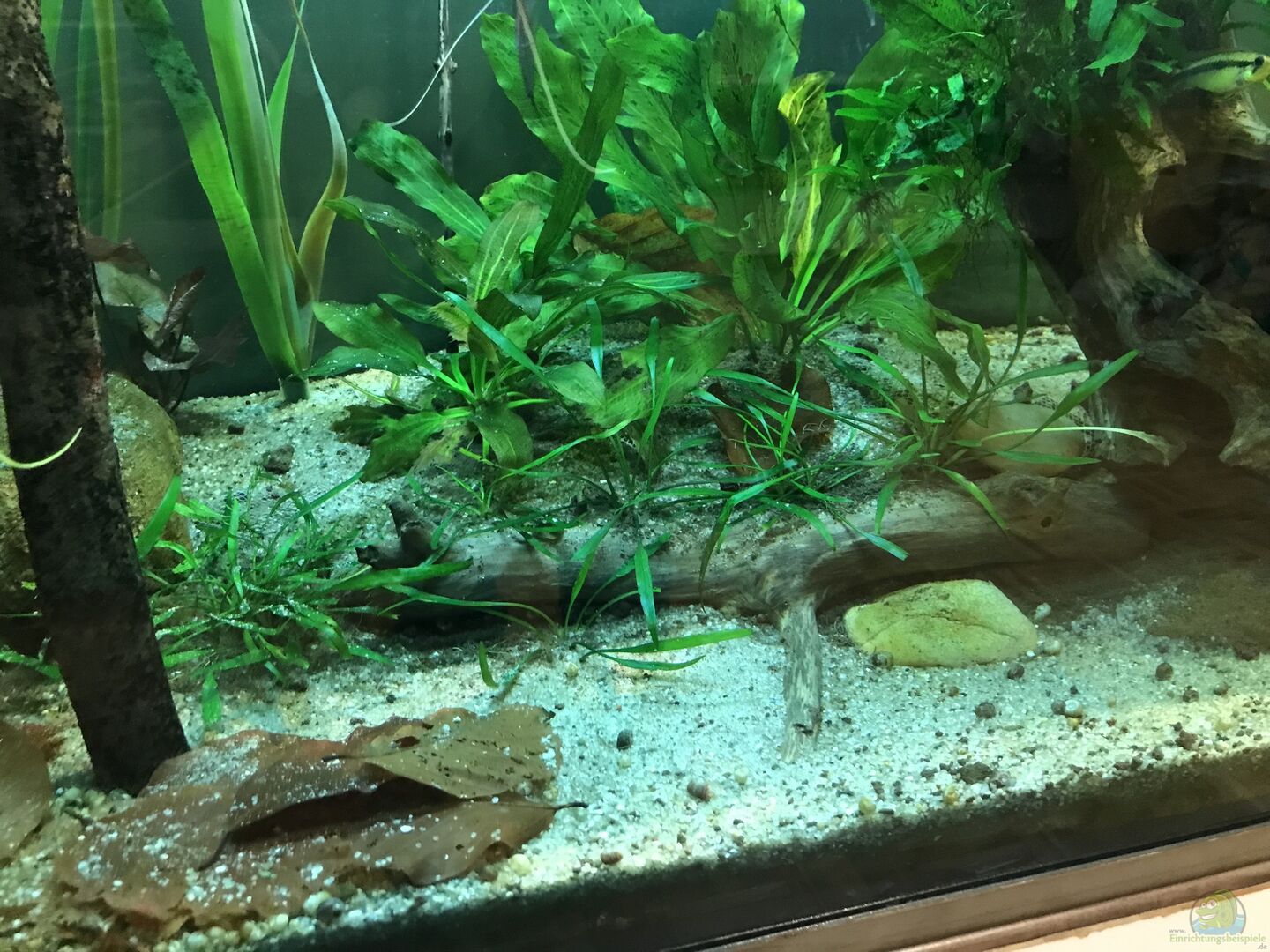Selbstgesammeltes Buchen- und Holunderholz Korkröhren zum Verstecken des Zu- und Ablaufs Kleine und große Kieselsteine Ab und an gebe ich etwas Buchen- oder Eichenlaub dazu
