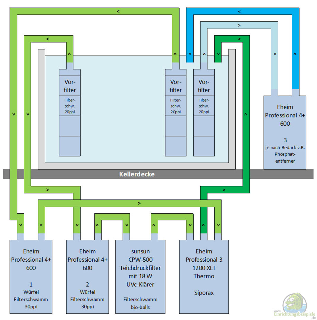 Aquariencomputer GHL Profilux 4 zur Lichtsteuerung, ausgestattet mit pH-, Temperatur- und Leitwert-Elektroden UVc-Klärer im Filterkreislauf