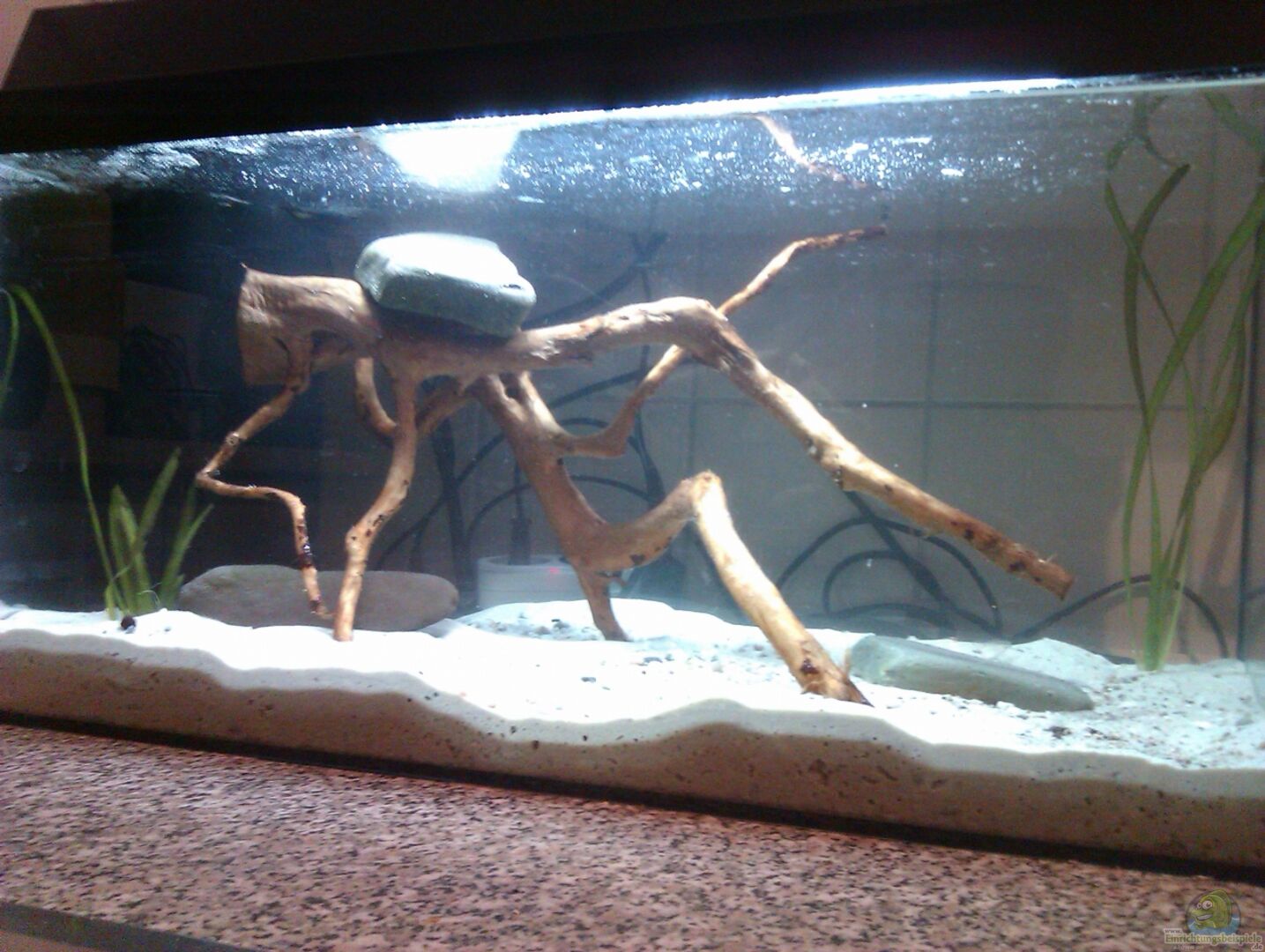 Wurzelholz Kieselfindlinge Seemandelbaumblätter Das Becken wird in nächster Zeit mit einer selbstgebastelten Rückwand ausgestattet.