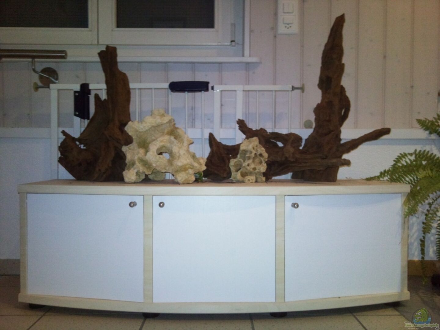 3 Mangrovenwurzeln 1 Lochgestein (Kunstharz) 2 Kokosnuss-Schalen Erlenzapfen