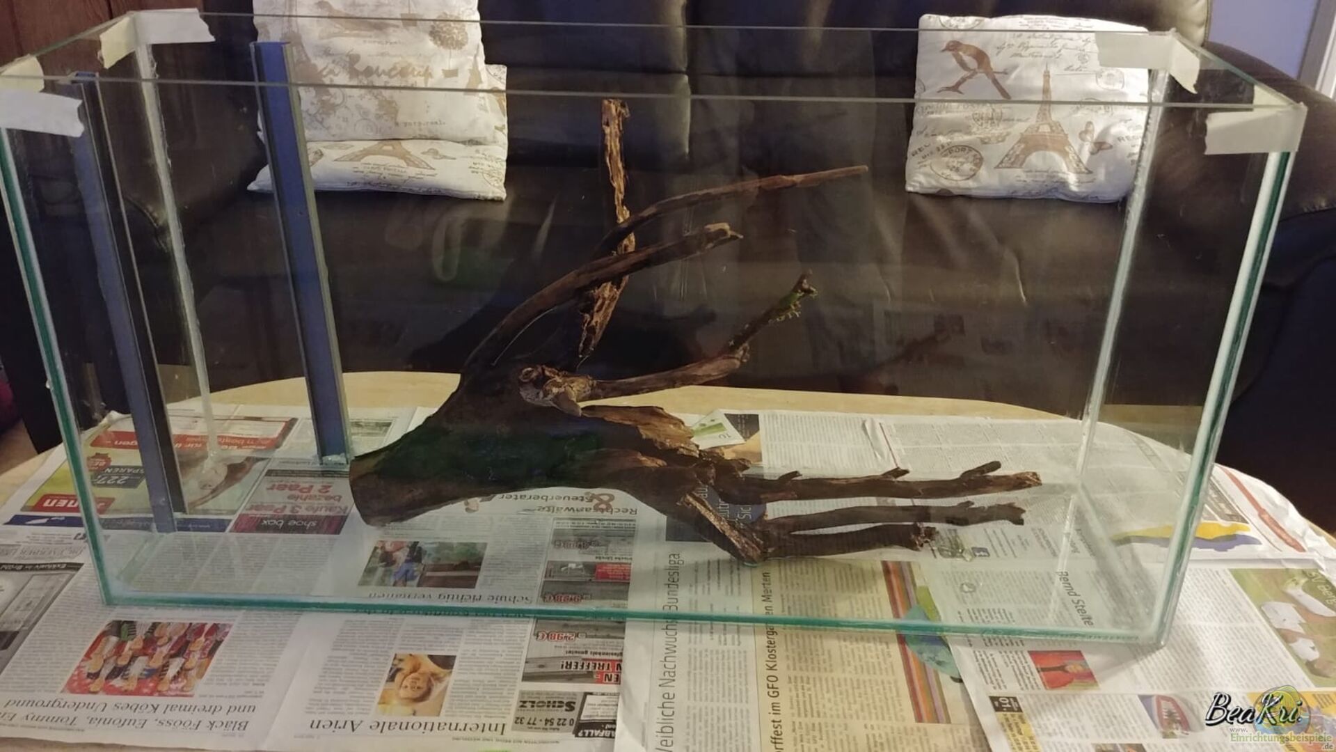 Ich hab ein geschenktes Standardbecken 80x40x30 zerlegt, beim Glaser auf die Ma??e 80x40x22 zuschneiden lassen plus 2x 2cm Querstreben und selber verklebt mit glasklarem Aquarium Silikon. Trockenzeit 12 Tage, eingeklebter HMF