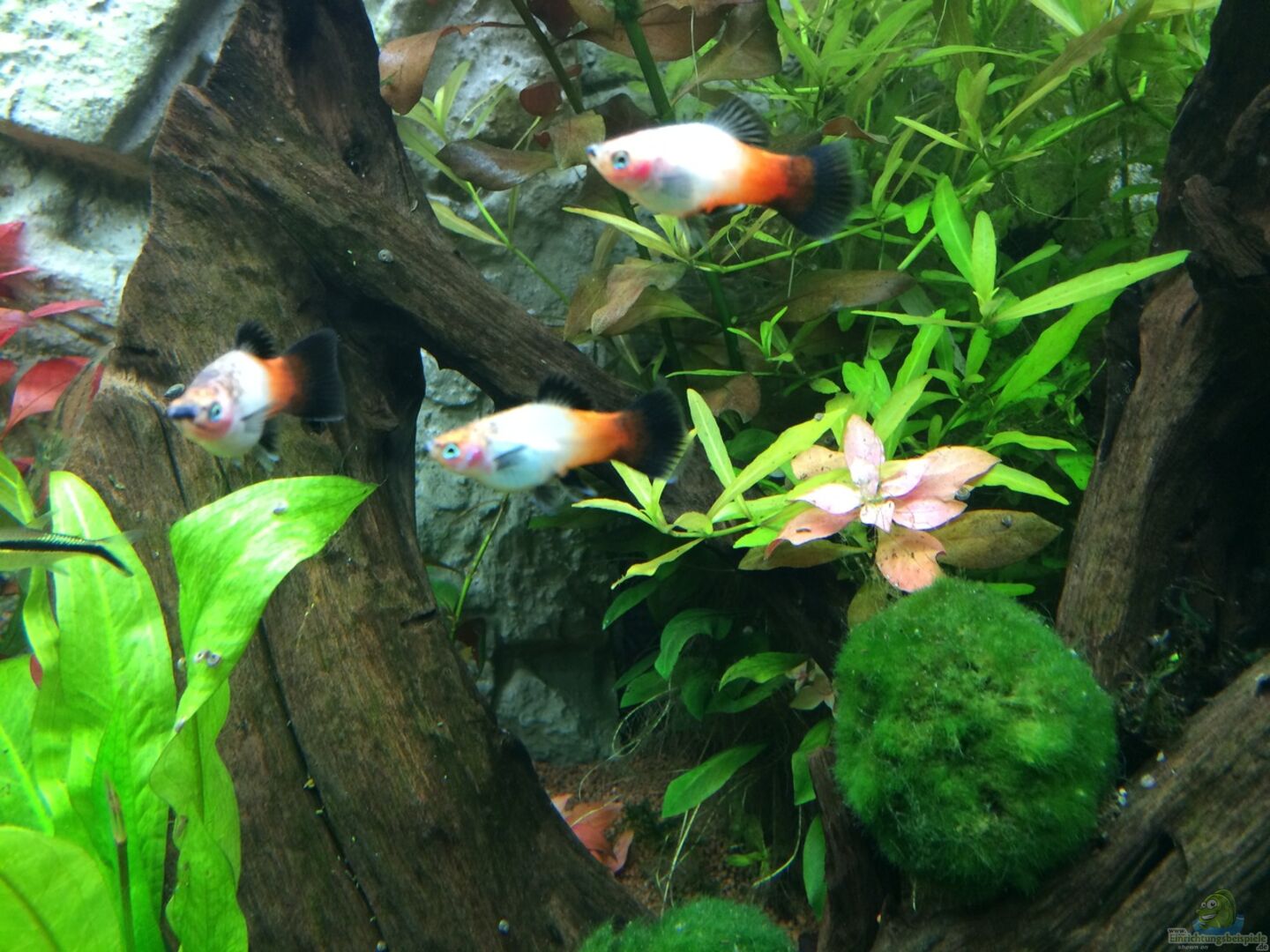 19 bunte Geweihschnecken (Clithon sowerbyana) 10 gestachelte Turmdeckelschnecken (Thiara winteri) 20 Amano-Garnelen (Caridina multidentata) 5 Panda Prachtalgenfresser (Garra Flavatra) 22 Schrägschwimmer (Thayeria boehlkei) 4 Platys (Xiphophorus maculatus "Sunburst Wagtail"), 2 Männchen, 2 Weibchen + ein paar Jungtiere 1 Pärchen (m/w) Kakadu-Zwergbuntbarsche (Apistogramma cacatuoides) 5 Netzpinselalgenfresser (Crossocheilus reticulatus)