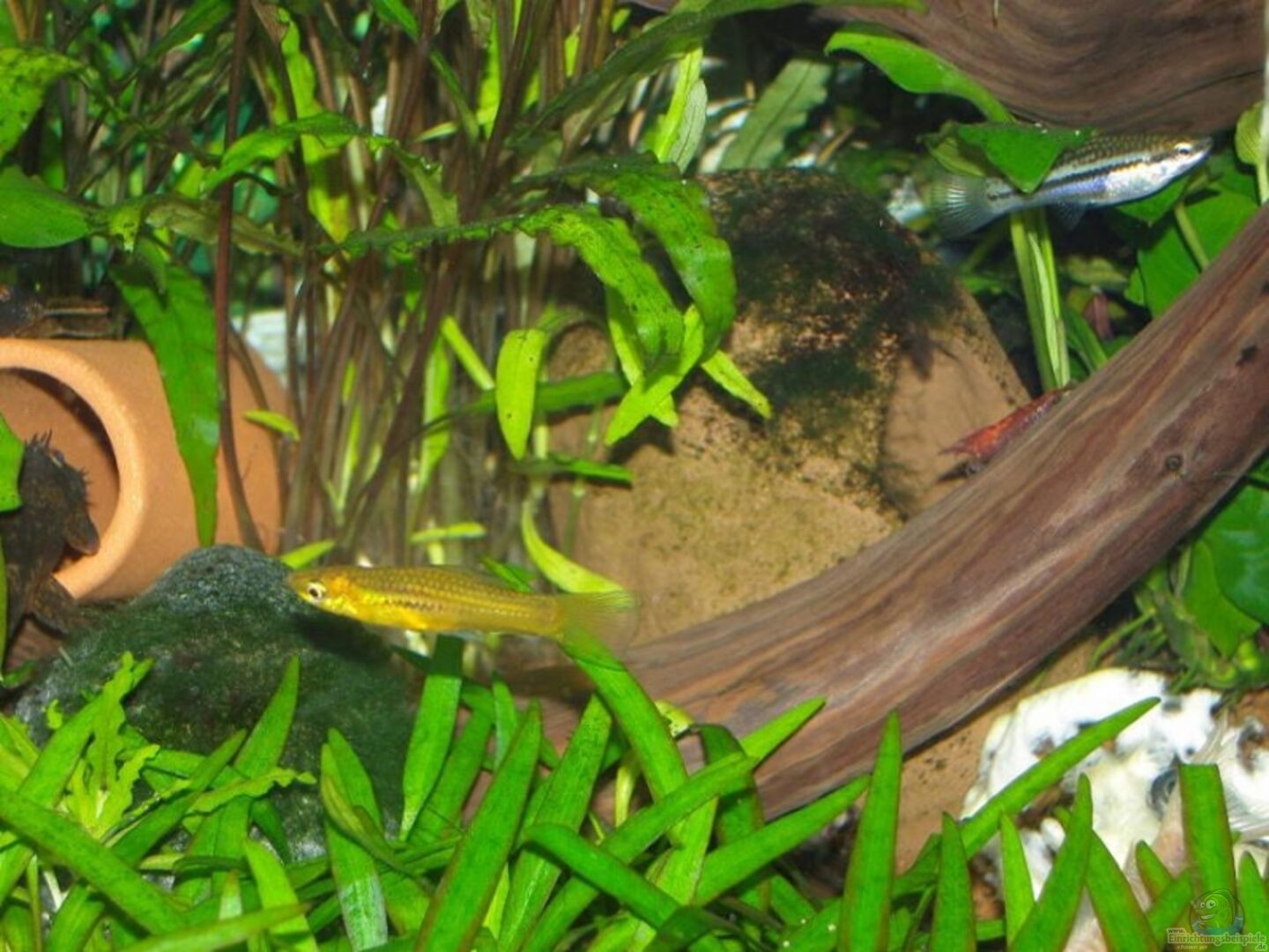 8 x Zwergschwerträger Xiphphorus pygmaeus gold 3M und 5W Männchen werden 3, 5 cm Weibchen werden 4 cm da diese Schwerttäger überhaupt nicht zänkisch untereinander sind, pflege ich mehrere Männchen in dieser Gruppe sonst bleibt der Nachwuchs aus, habe ich festgestellt!!!! 1 Raubschnecke Anetoma Helena zur Bekämpfung der vielen Turmdeckel und Posthornschnecken in allen Becken!!!!! seit dem 10.05.08 Nachwuchs der Schwertträger