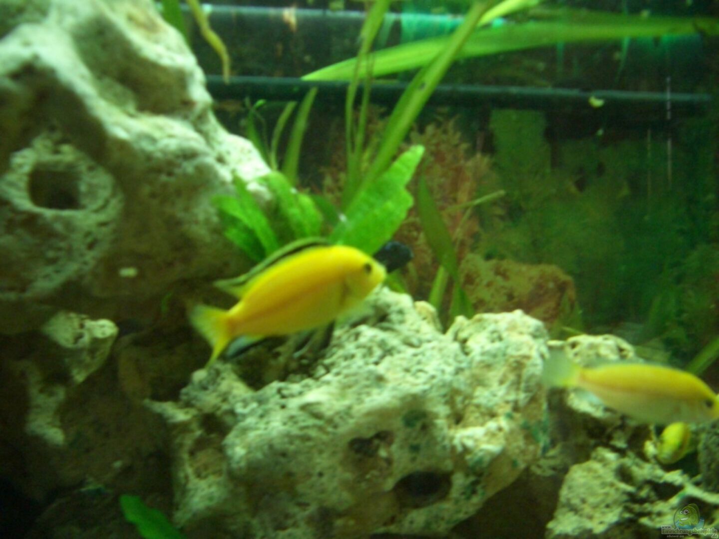 2/3Melanochromis cyaneorhabdos+ zwei Jungfische 1/3Maylandia estherae 2/3Labidochromis ´Yellow´ 1/1 Antennenwelse Der komplette Besatz wird bald auf jeweils 1/3 reduziert.Hatte damals etwas mehr gekauft weil man die Geschlechter noch nicht 100 Prozentig erkennen konnte.