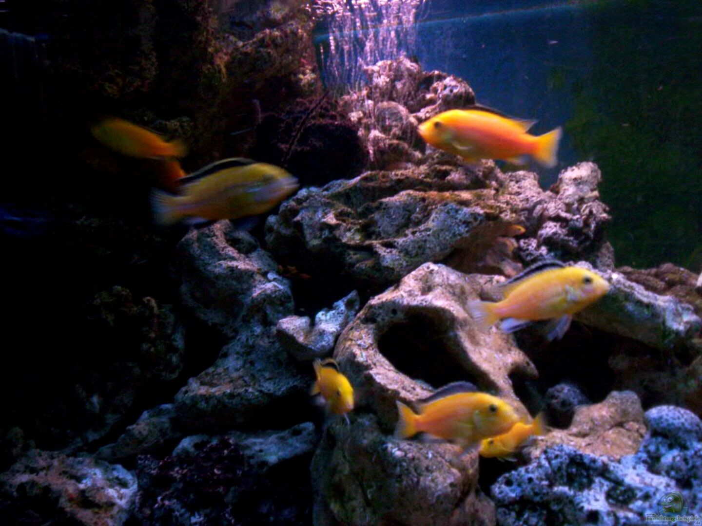 Labidochromis caeruleus; Yellow (3M/6W) + Jungtiere Melanochromis auratus; Türkisgoldbuntbarsch (1M/3W) + Jungtiere Melanochromis maingano (1M/3W)