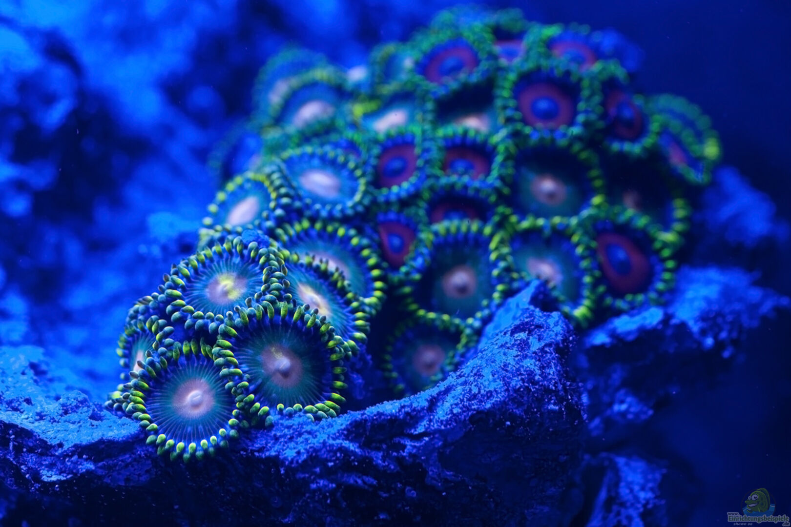 Zoanthus, Catalaphyllia jardinei, Menella sp., Ricordea florida, Ricordea yuma, Xenia umbellata, Microprotula, Spirobranchus giganteus, Sabellastarte, Montipora, Caulastrea furcata, Acanthastrea, Tubastraea faulkneri