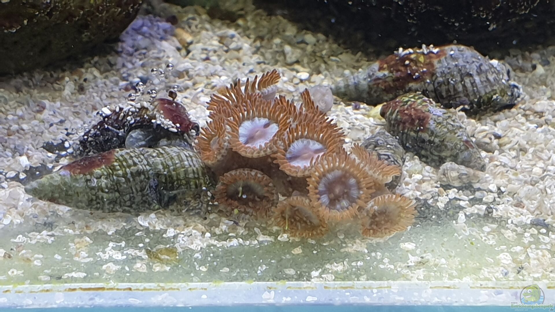 3 Einsiedlerkrebse Unzählige Schnecken (>125) Briareum Montipora digitata Riccordia florida Seriatopora Zoanthus (Alien Explosion, Watermelon, rot?, Radioactive) unbekannte Schwämme