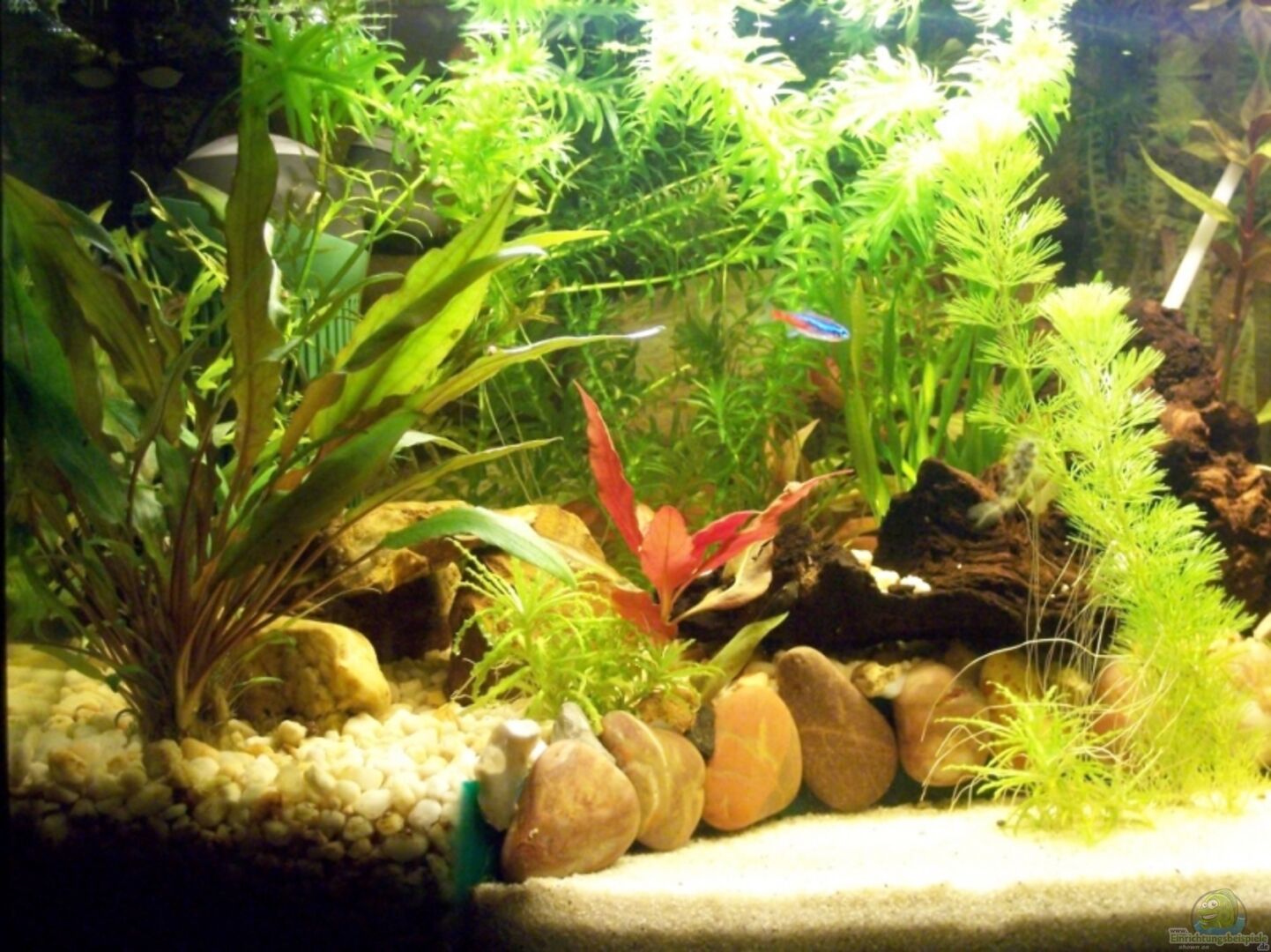 Kies und Sand im Becken, durch Plexiglas getrennt. Ich hab das mal als Experiment gestartet. Mir sind die Risiken bei der evtl. Vermischung von Sand und Kies bekannt, aber jetzt nach gut einem Monat ist noch keine Vermischung, auch auf Grund des Höhenunterschieds, zu erkennen.