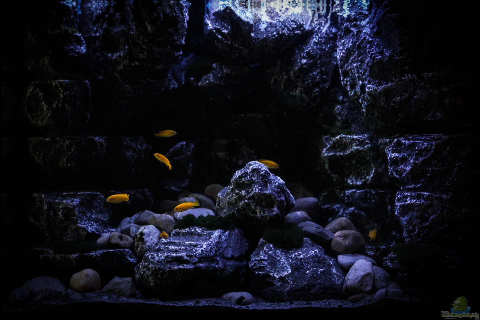 Vom Aquarienbauer incl. Abdeckung. 12mm Floatglas, Wulstverklebt in Schwarz mit Sicherheits-innennaht. Hinten rechts befindet sich ein ??berlaufschacht mit zwei Kammern und abnehmbaren Kamm. Die Frontscheibe aus Wei??glas hat ein eher seltenes Seitenverhältniss von 100cm x70cm. Das ist eine recht kurze Kantenlänge, aber die Nische in der das AQ steht hat leider nicht mehr zugelassen. Die 70 für die Höhe waren vorallem eine ästhetische Entscheidung, das mehr an Wasservolumen sollte [...]