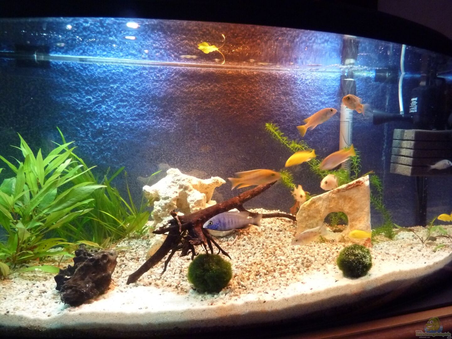 Aquael-Becken mit gewölbter Frontscheibe. Achtung ! Wir Malawis sind schon im Juni bei bester Gesundheit umgezogen !