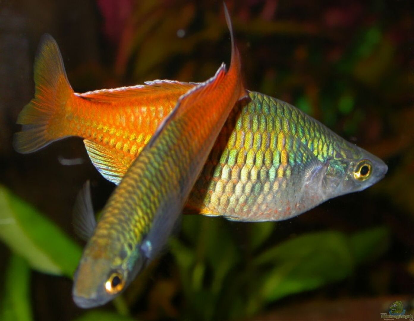 11 Boeseman´s Regenbogenfische (6m/5w) - Melanotaenia boesemani 11 Siamesische Rüsselbarben - Crossocheilus siamensis 4 Längsband Saugbarben - Garra cambodgiensis 10 Schachbrettschmerlen - Yasuhikotakia sidthimunki 1 Feuerschwanz - Epalzeorhynchos bicolor 5 Zebra-Rennschnecken