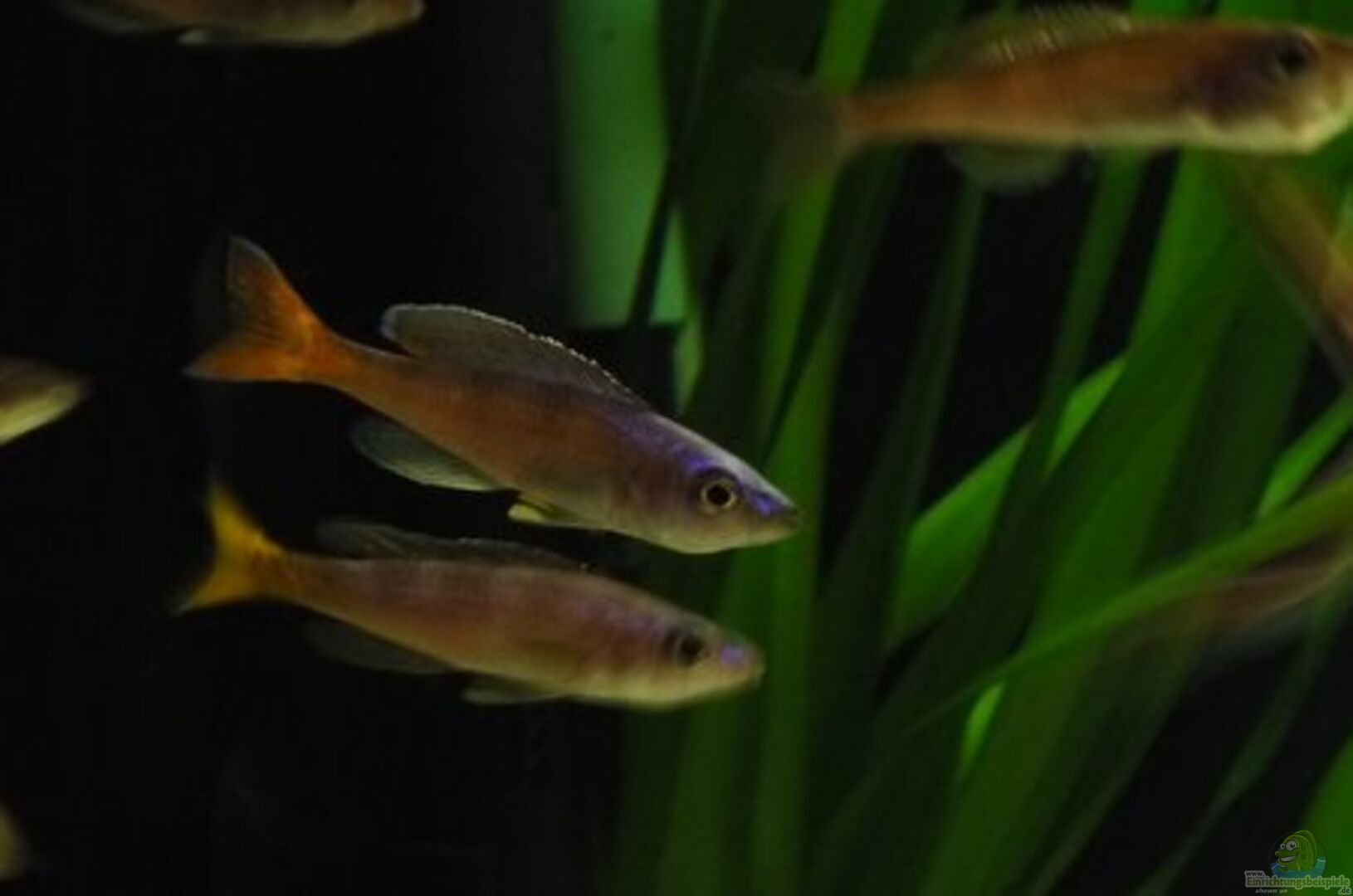 zwei Cyprichromis Männchen mit gelber und orangefarbener Schwanzflosse von vitus (10)