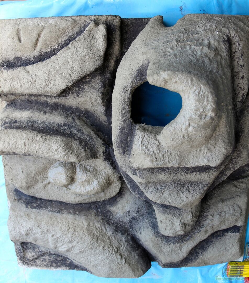 3-teilige Rückwand und rechte Seitenwand sowie 2 Riffplatten in Eigenbau (siehe Block 3) Tiefe der Rückwand 2-16 cm mit vielen Spalten und ??berhängen als Versteckmöglichkeiten. Rockzolid Stone Module D (32x13x13) als hängender Stein unter der Querstrebe Rockzolid River Stone J (56x39x34) ca. 1/3, 2/3 geteilt und ins Becken gestellt um etwas Gewicht zu sparen. In den River Stone Teile sind auf den Rückseiten Aussparungen um als Höhlen zu dienen. Zusätzlich befinden sich noch [...]