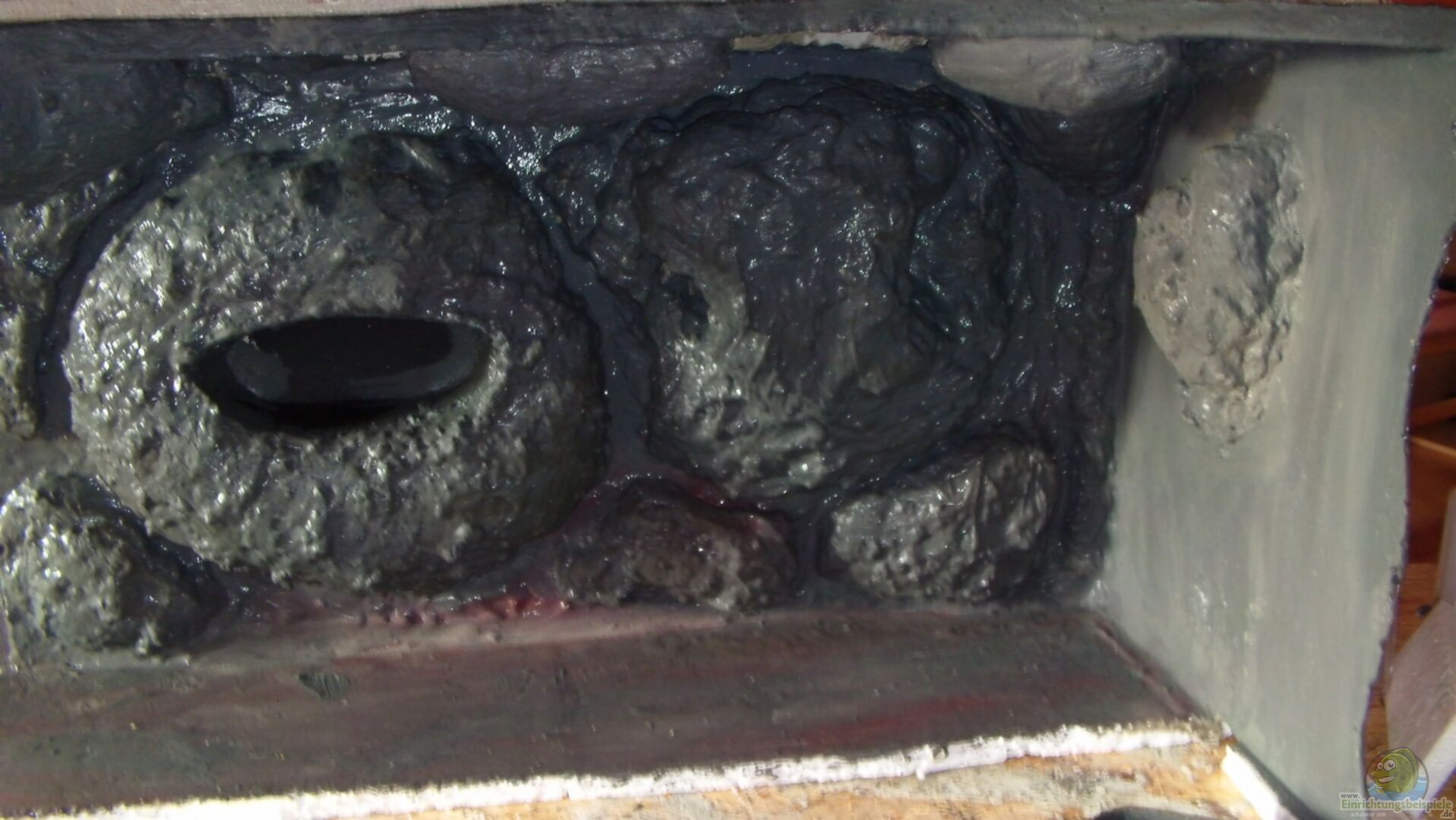 75 kg Braunes Gestein aus altem Becken. Einen Oxydator gegen Algen, Oxydator-Flüssigkeitsgemisch 1:6, alle vierzehn Tage neu auffüllen. Funkioniert super.