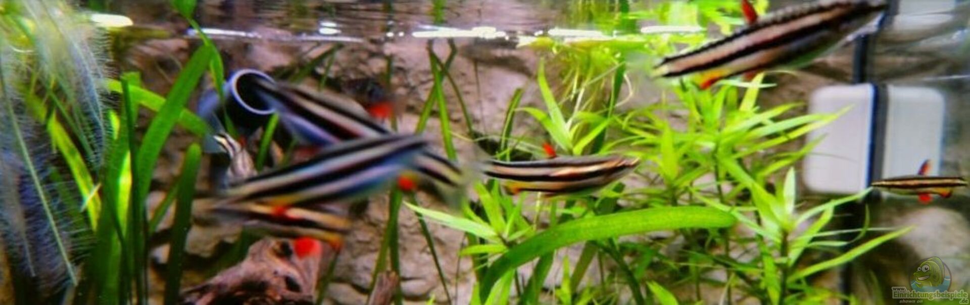 2 W Microgeophagus ramirezi (Schmetterlingsbuntbarsche) 10 Nannostomus marginatus (Zwergziersalmer) 5 Geweihschnecken 4 Amanogarnelen