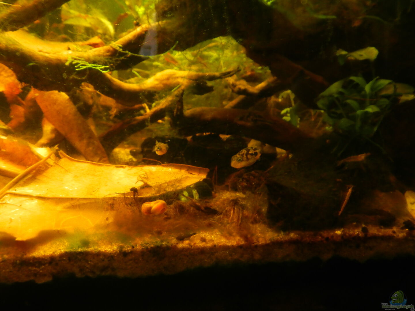 Fische Carinotetraodon travancoricus (Zwergkugelfisch) 10w/8m Otocinclus macrospilus (Gelber Ohrgitterharnischwels) 2w/3m Garnelen Neocaridina palmata (Marmorgarnele) Neocaridina davidi/heteropoda (Rückenstrichgarnele) Schnecken Brotia henriettae (Genoppte Turmdeckelschnecke) Melanoides tuberculata (Malaiische Turmdeckelschnecke) Planorbarius corneus (Posthornschnecke) Physidae spec. (Blasenschnecke) Ausgezogen, aber auf Fotos zu sehen Oryzias woworae (Neonreisfisch, [...]