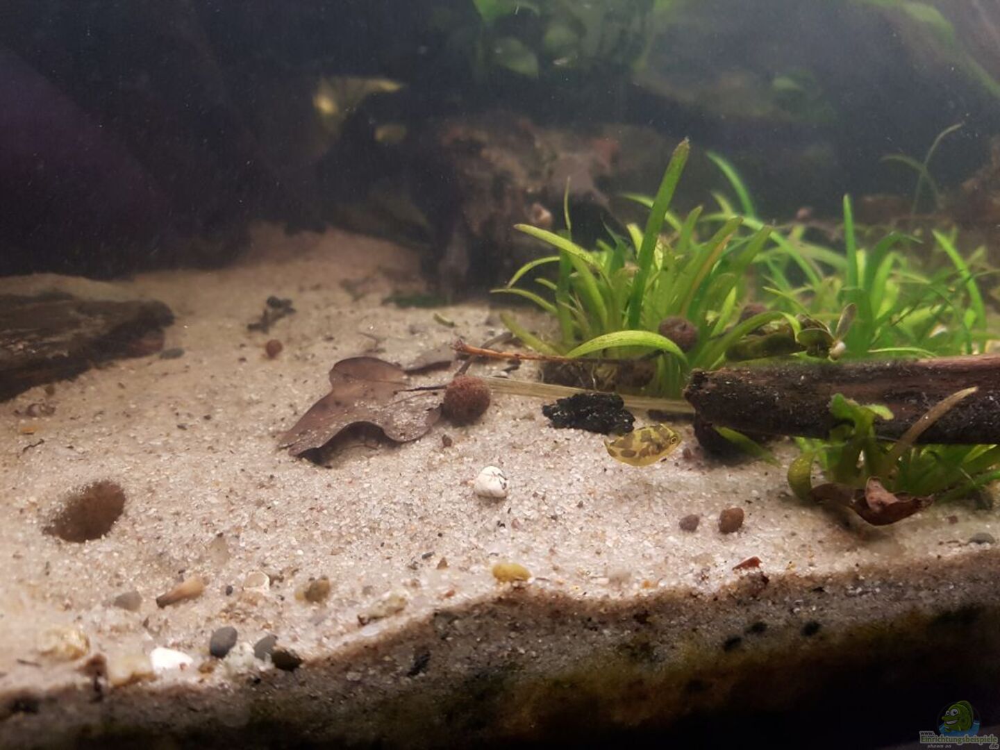 Fische Carinotetraodon travancoricus (Zwergkugelfisch), derzeit 1W/1M und Nachwuchs Otocinclus vittatus (Ohrgitterharnischwels) 2W/3M Otocinclus mariae (Ohrgitterharnischwels) 2M Pangio oblonga (Zimtfarbenes Dornauge) 6? Pangio kuhli (Halbgebändertes Dornauge) 4W/6M Oryzias woworae (Neonreisfisch) 2W/2M und Nachwuchs Colisa lalia (Zwergfadenfisch) 4W (1M, 2xW natur, 2xW golden, aus einem Händlerbecken) Schnecken Brotia henriettae (Genoppte Turmdeckelschnecke) Melanoides tuberculata [...]