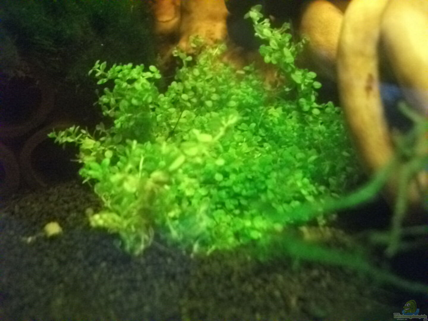 Javafarn Javamoos (auf der Wurzel festgebunden) Mooskugel (aufgeschnitten und auf den Garnelenröhren festgebunden) Zwergperlkraut Javamoos (auf einem kleinen Lavastein festgebunden)