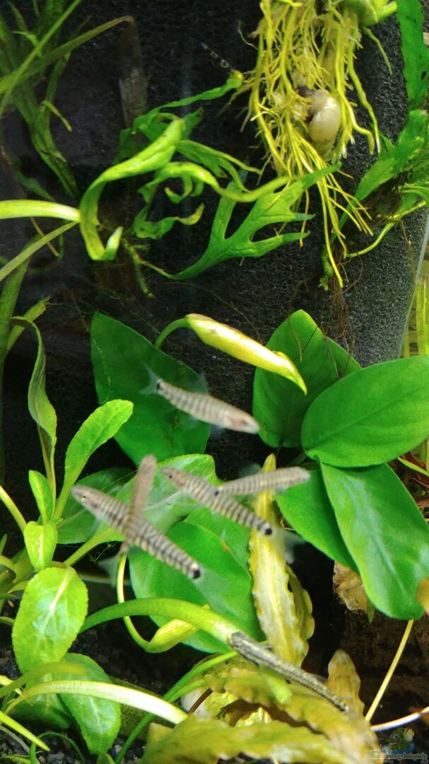 Mehrere Limia tridens, 4 Ozelotringelgrundeln, 5 Blaue Zwerggrundel, , 12 Längsstreifen Boraras, 5 Zwergstreifenschmerlen, 1 Hummelzwergwels und 4 Zwergdeltaflügelwelse