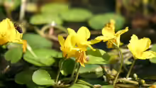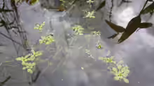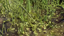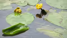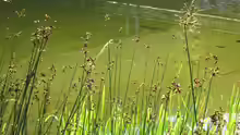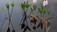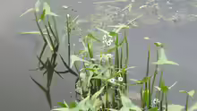 - Schwimmblattpflanzen wie Seerosen (Nymphaea) und Froschbiss