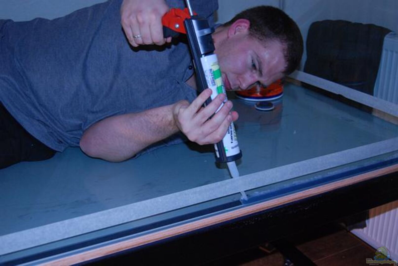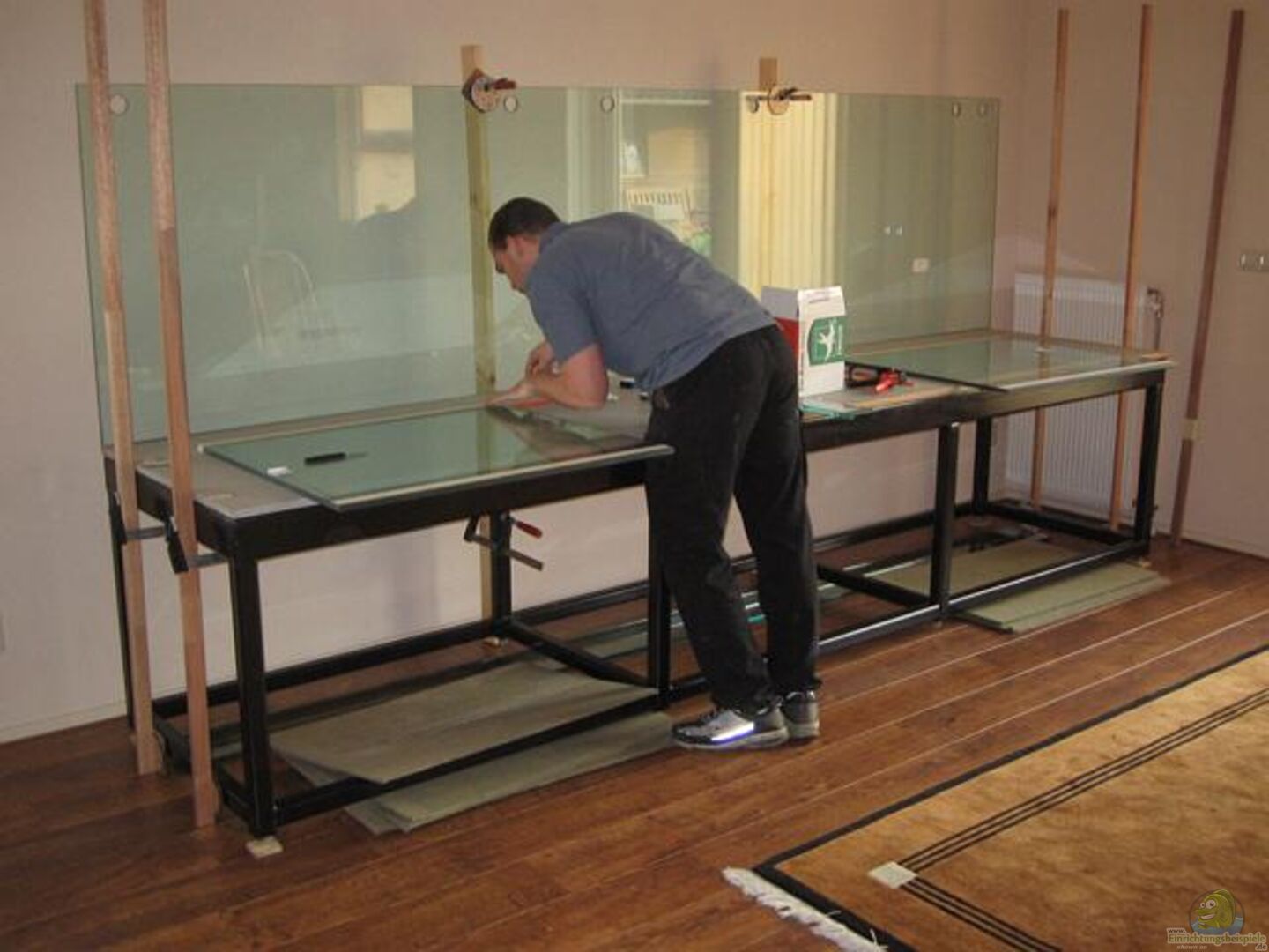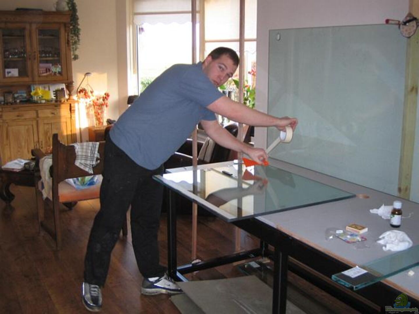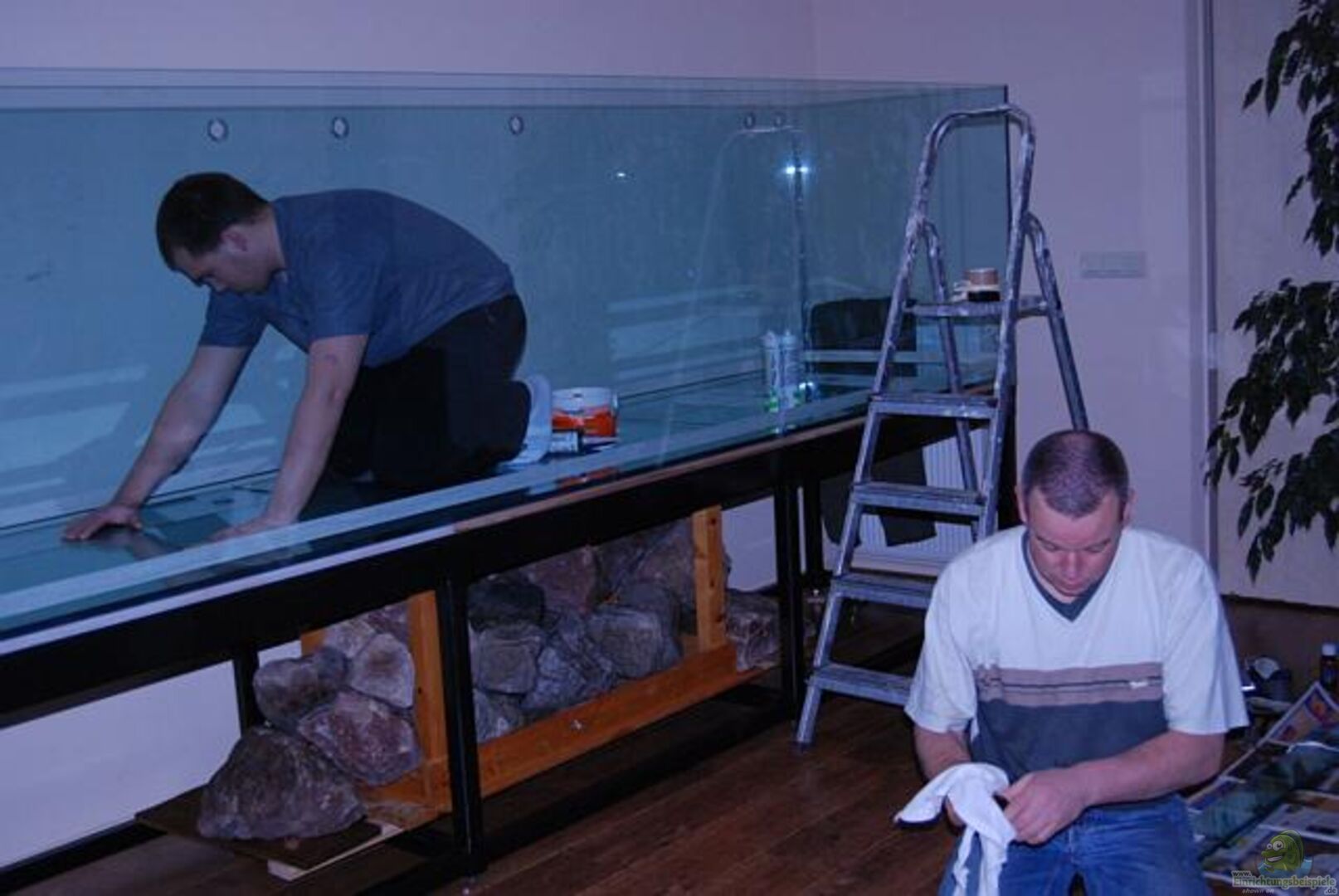 Seitliche Draufsicht zum Aquarium hin.