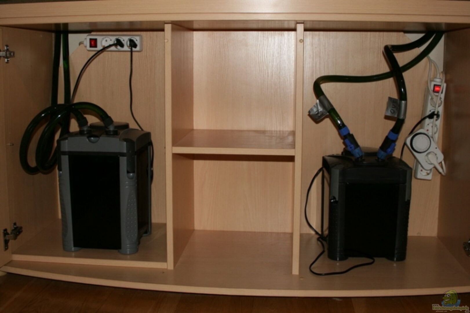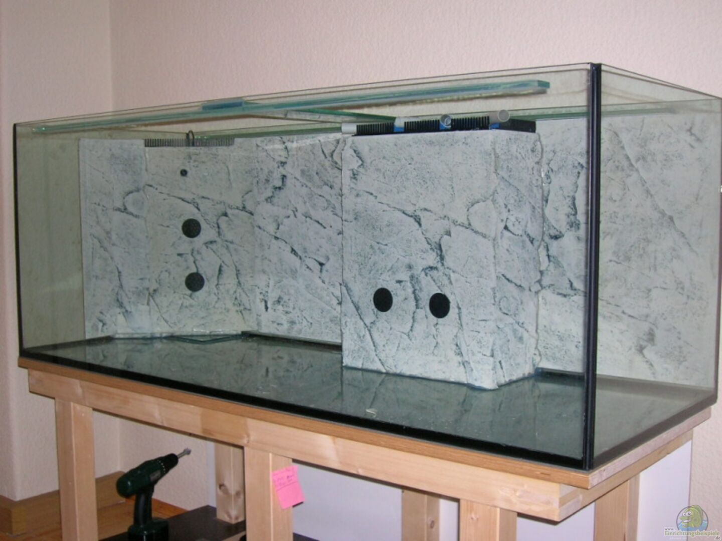Die Filter neben dem Aquarium verdeckt zum Gesamtbild passen