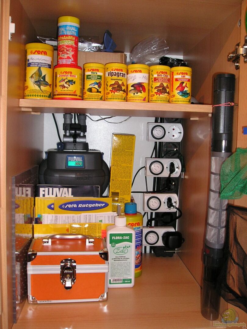 Mein Aquarienschrank inklusive Technik u. Futter!